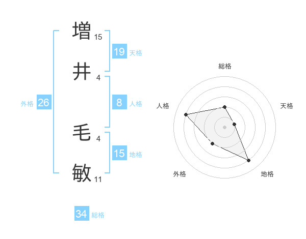 増井 毛敏さんの総格は34画の2点!