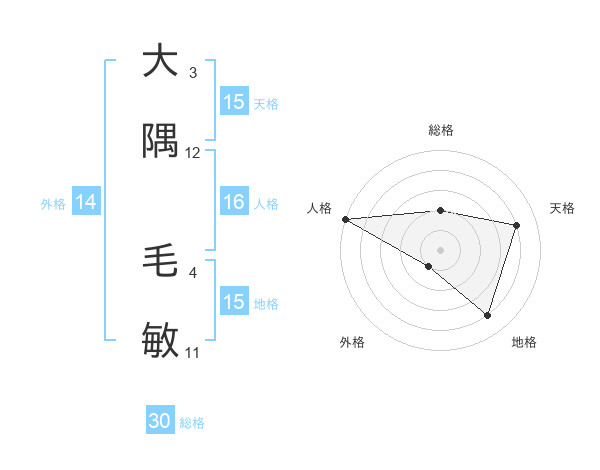 大隅 毛敏さんを姓名の画数から五運を鑑定