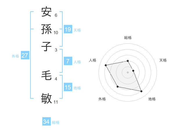安孫子 毛敏さんを姓名の画数から五運を鑑定