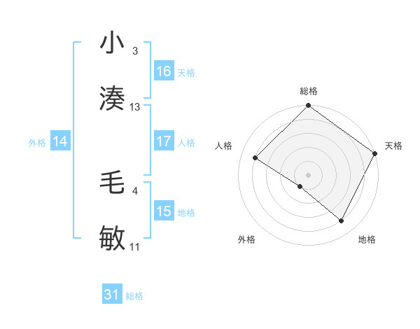 小湊 毛敏さんの総格は31画の5点!