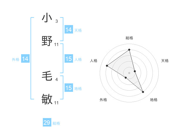 小野 毛敏さんの総格は29画の4点!