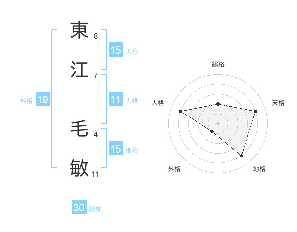 東江 毛敏さんの総格は30画の2点!