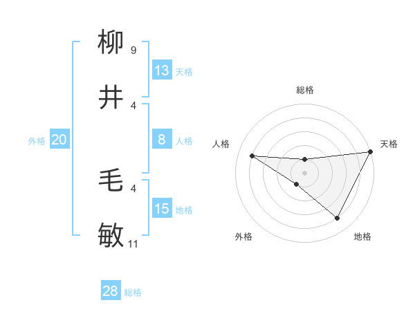 柳井 毛敏さんを姓名の画数から五運を鑑定