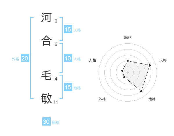 河合 毛敏さんを姓名の画数から五運を鑑定