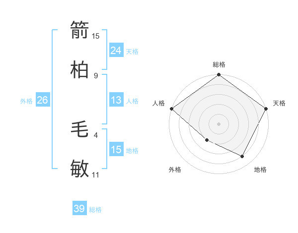 箭柏 毛敏さんの天格は24画の5点!