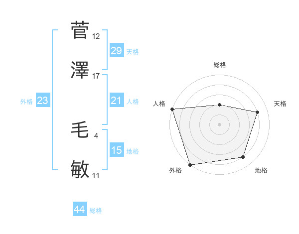 菅澤 毛敏さんの天格は29画の4点!