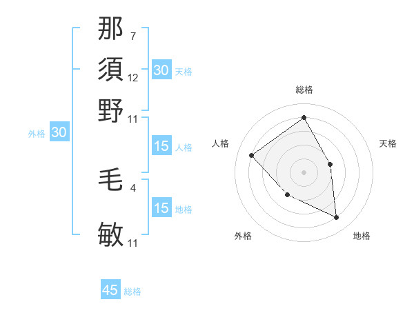 那須野 毛敏さんを姓名の画数から五運を鑑定