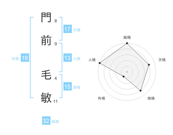 門前 毛敏さんを姓名の画数から五運を鑑定