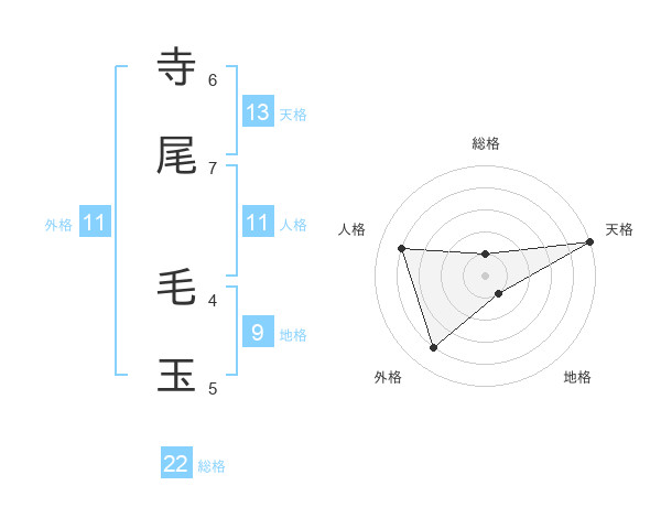 寺尾 毛玉さんを姓名の画数から五運を鑑定