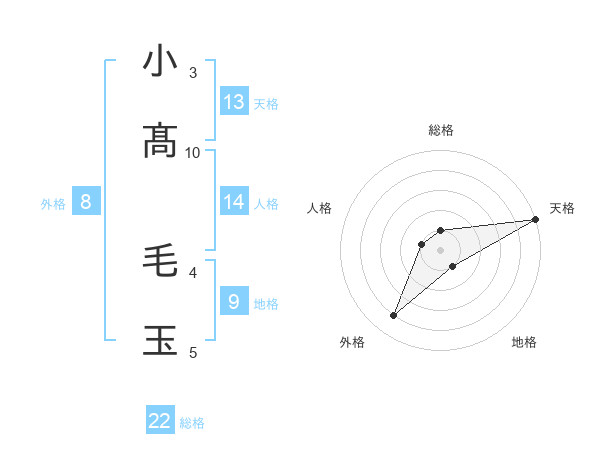 小髙 毛玉さんを姓名の画数から五運を鑑定