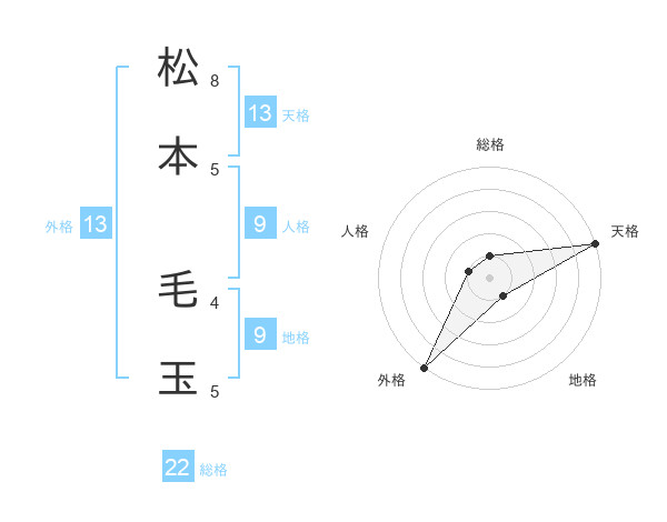松本 毛玉さんを姓名の画数から五運を鑑定