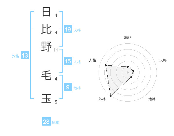日比野 毛玉さんの外格は13画の5点