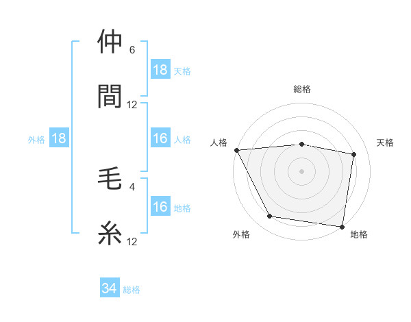 仲間 毛糸さんを姓名の画数から五運を鑑定