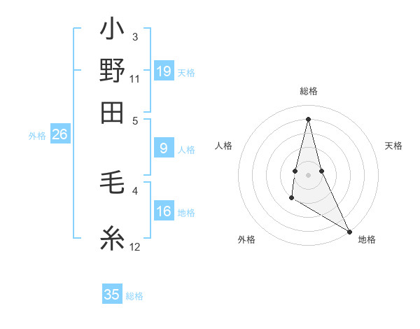 小野田 毛糸さんを姓名の画数から五運を鑑定