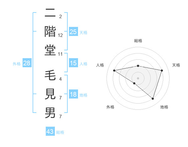 二階堂 毛見男さんを姓名の画数から五運を鑑定