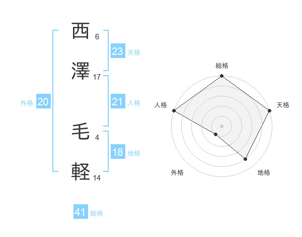 西澤 毛軽さんを姓名の画数から五運を鑑定