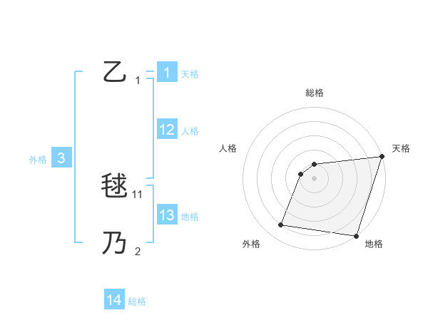 乙 毬乃さんの総格は14画の1点!