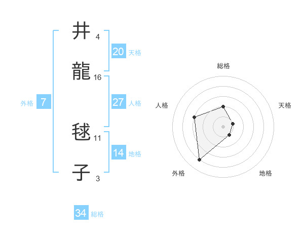 井龍 毬子さんの総格は34画の2点!