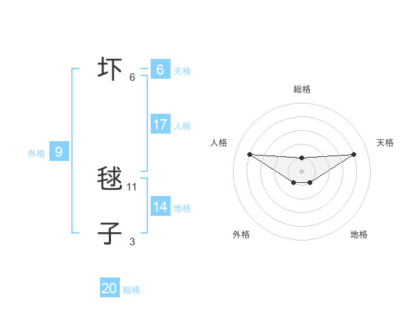 圷 毬子さんの総格は20画の1点!
