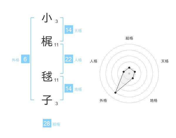 小梶 毬子さんを姓名の画数から五運を鑑定