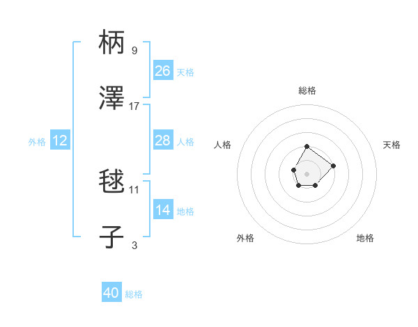 柄澤 毬子さんを姓名の画数から五運を鑑定