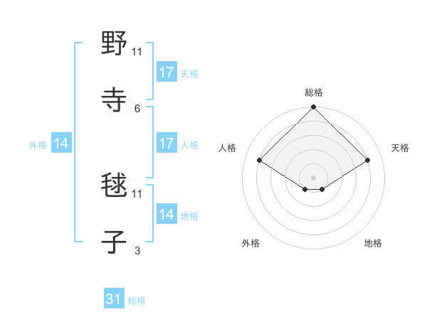 野寺 毬子さんを姓名の画数から五運を鑑定