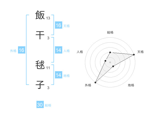 飯干 毬子さんを姓名の画数から五運を鑑定