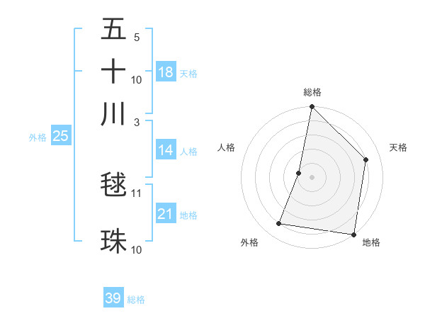 五十川 毬珠さんを姓名の画数から五運を鑑定