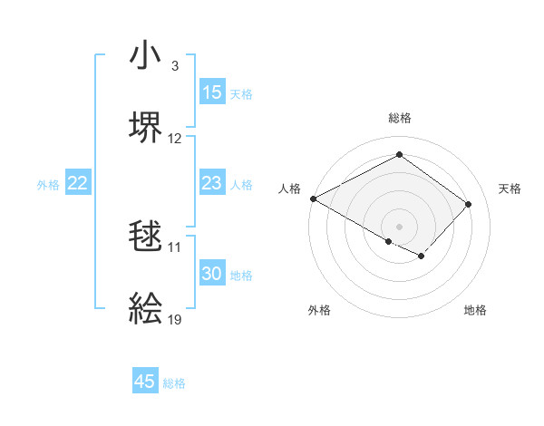 小堺 毬絵さんの総格は45画の4点!