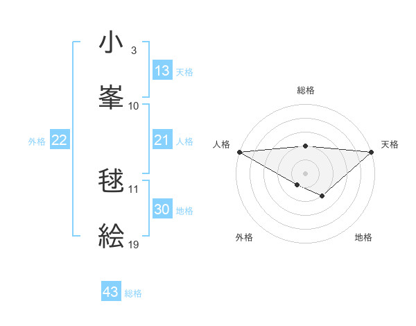 小峯 毬絵さんを姓名の画数から五運を鑑定