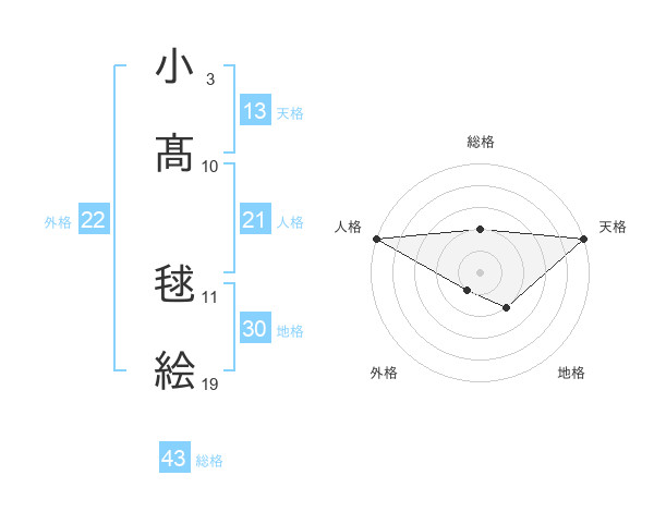 小髙 毬絵さんを姓名の画数から五運を鑑定