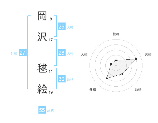 岡沢 毬絵さんの天格は25画の4点!