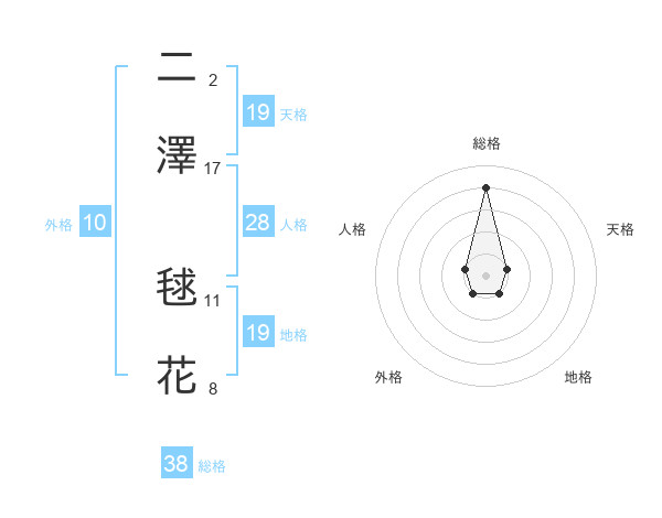 二澤 毬花さんの総格は38画の4点!
