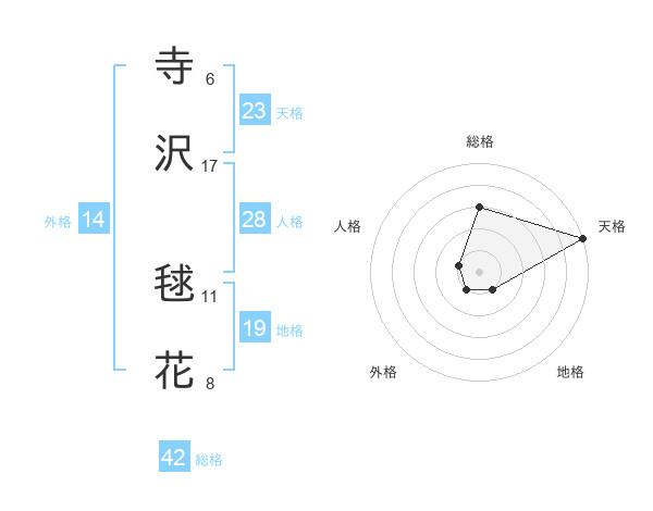 寺沢 毬花さんを姓名の画数から五運を鑑定