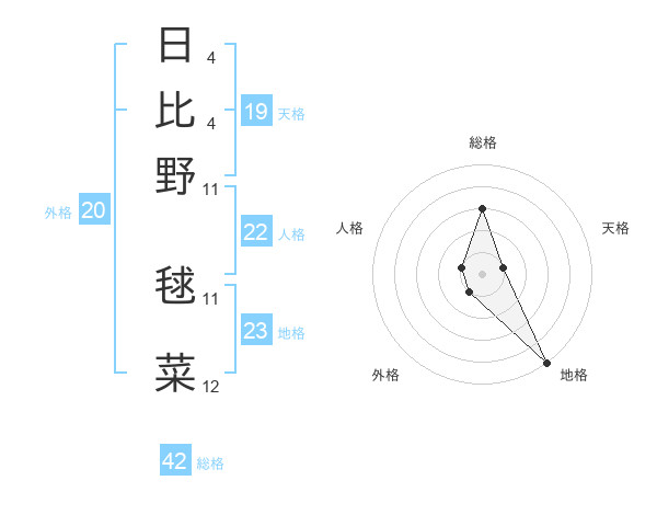 日比野 毬菜さんを姓名の画数から五運を鑑定