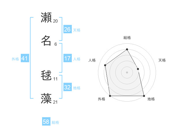 瀬名 毬藻さんの総格は58画の4点!