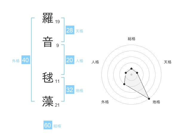 羅音 毬藻さんを姓名の画数から五運を鑑定