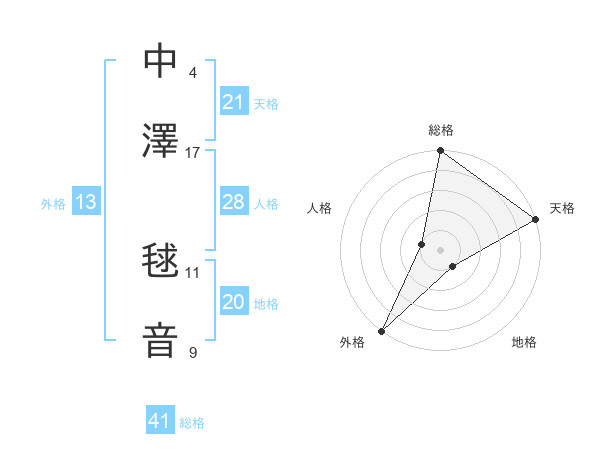 中澤 毬音さんの外格は13画の5点!