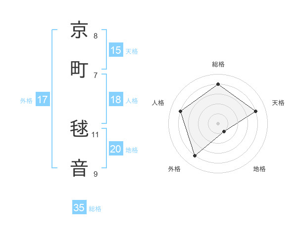 京町 毬音さんの総格は35画の4点!