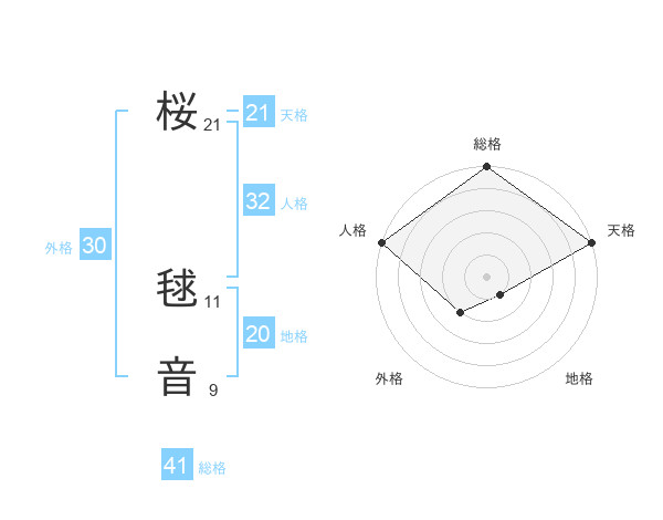 桜 毬音さんの天格は21画の5点!