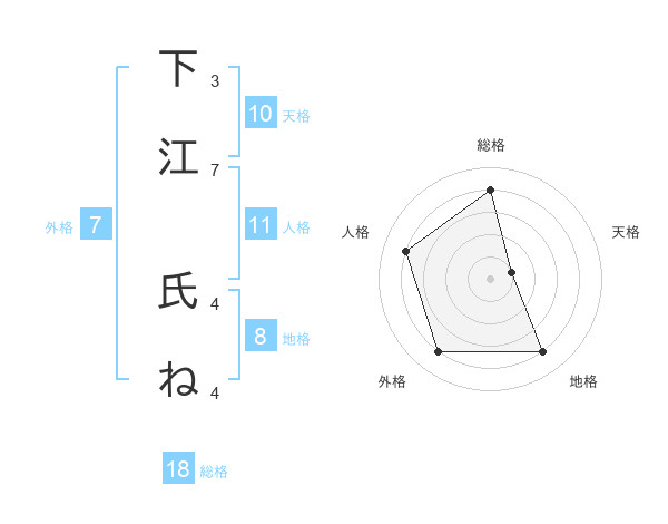 下江 氏ねさんの総格は18画の4点!
