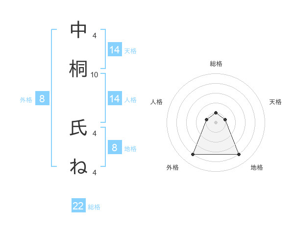 中桐 氏ねさんの外格は8画の4点!