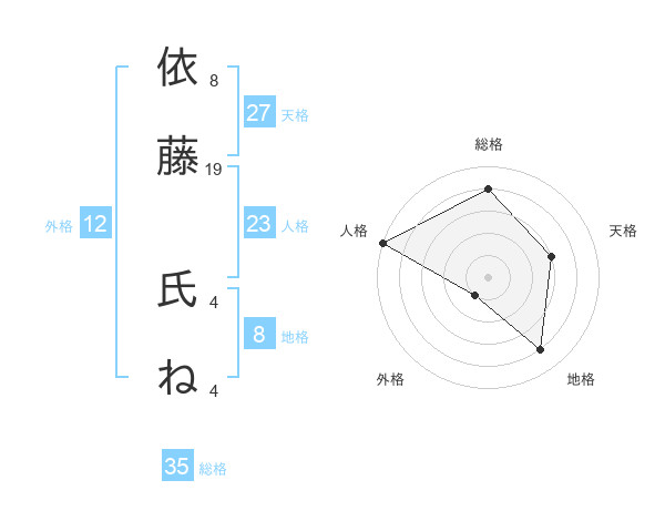 依藤 氏ねさんを姓名の画数から五運を鑑定