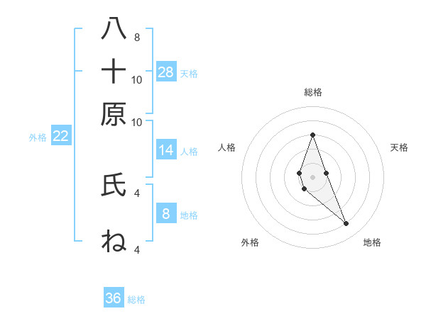 八十原 氏ねさんを姓名の画数から五運を鑑定