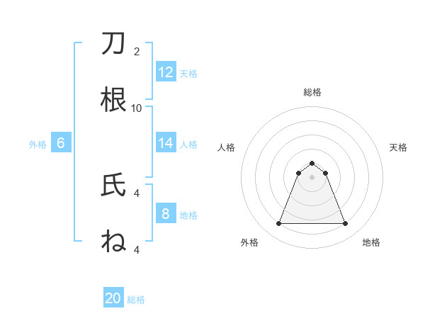 刀根 氏ねさんを姓名の画数から五運を鑑定