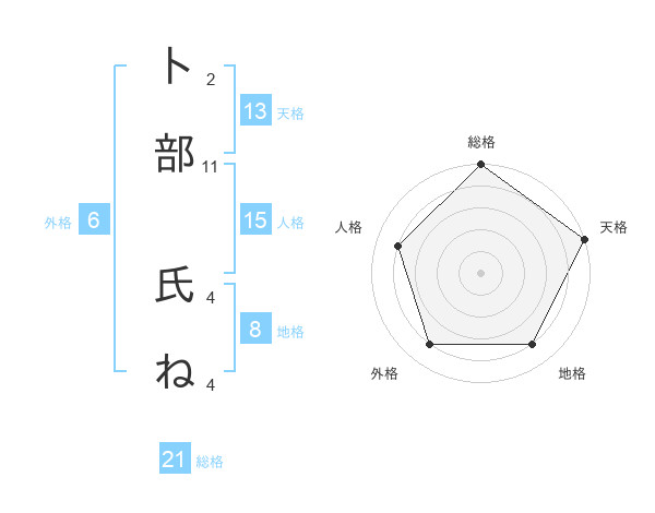卜部 氏ねさんを姓名の画数から五運を鑑定