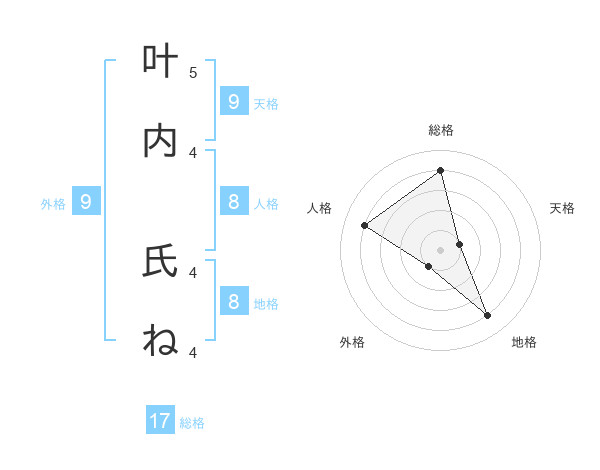 叶内 氏ねさんの地格は8画の4点!