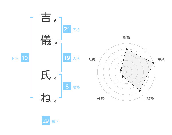 吉儀 氏ねさんの天格は21画の5点!