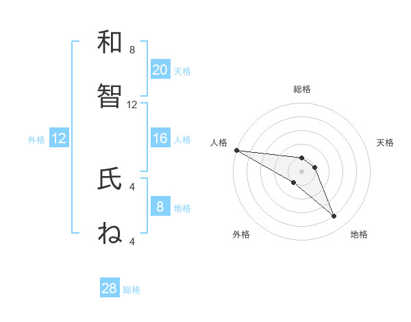 和智 氏ねさんの地格は8画の4点!