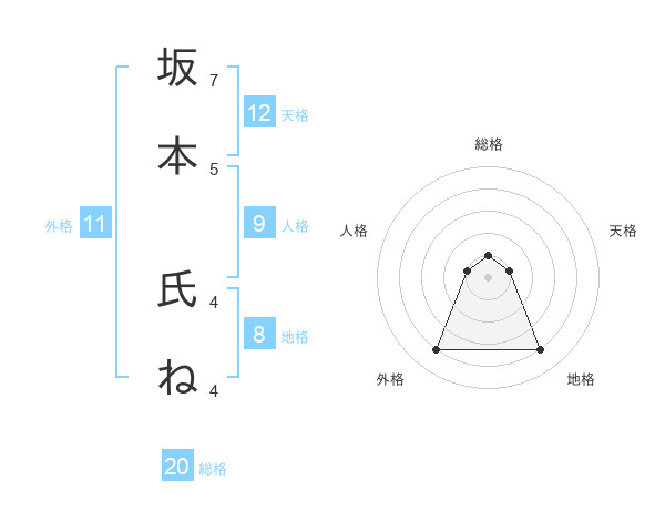 坂本 氏ねさんを姓名の画数から五運を鑑定